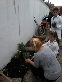 Alumnos de 4 con mamás y la Seño Elsa embellecieron el jardín de la escuela